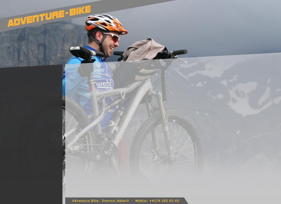 | ADVENTURE-BIKE Dominic Häberli Wartenbergstrasse 43 CH-4127 Birsfelden M +41 79 282 83 85 Deine Nachricht an uns: > Anfrage / Kontaktformular Für Fragen für eine geführte Mountainbike Tour stehe ich Dir gerne zur Verfügung. |